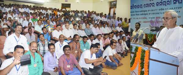 Chief Minister Shri Naveen Patnaik addressing at the Fourth Annual Ceremony of Milita Sarakari Motor Karmachari Sangha at Secretariat
