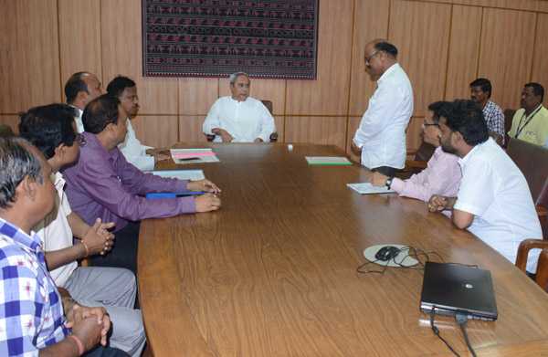 Chief Minister Shri Naveen Patnaik discussing with delegates of NALCO Coordination Committee on at Secretariat