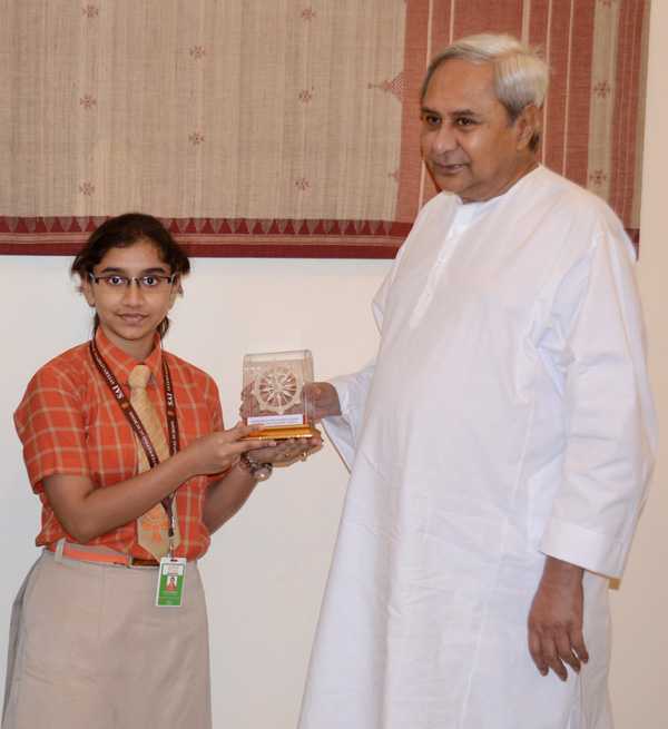 Chief Minister Shri Naveen Patnaik felicitating Soumya Sambavi for her Outstanding Performance in CBSE 12th Commerce exam at Secretariat